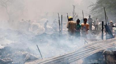 झुग्गी बस्ती में तबाही, राहत कैंप में पहुंचाए गए पीड़ित