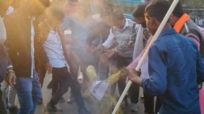 विहिप ने बांग्लादेश का पुतला दहन कर जोरदार विरोध प्रदर्शन किया