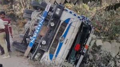 बजरी से भरा ट्रक पलटा, मजदूरों के कैंप में मचा कोहराम