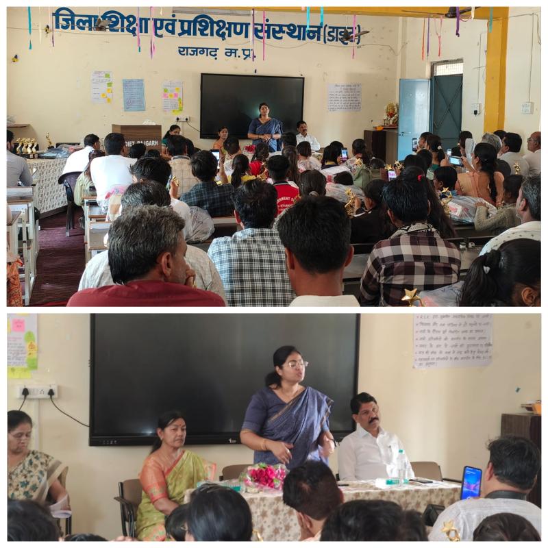 साथ ही शुक्रवार को डाइट राजगढ़ में आयोजित हुए इस कार्यक्रम में मुख्य अतिथि अनुविभागीय (राजस्व) अधिकारी श्रीमती निधि भारद्वाज रही। सहभागियों का पंजीयन कार्य श्रीमती विनीता सक्सेना, श्री गिरीश शर्मा और श्रीमती राजेश तोमर द्वारा किया गया। कार्यक्रम की शुरूआत मुख्य अतिथि श्रीमती भारद्वाज सहित डाइट प्राचार्य श्रीमती शीला पाटोदिया, डीपीसी श्री आर.के. यादव द्वारा मां सरस्वती पूजन से की गई। कार्यक्रम में छात्र माही, वेदांशी जायसवाल द्वारा अपनी ओलिंपियाड तैयारी और सफलता के बारे में सभी को बताते हुए अपने परिवार और शिक्षक को अपनी सफलता का श्रेय दिया। कार्यक्रम में मुख्य अतिथि अनुविभागीय (राजस्व) अधिकारी श्रीमती भारद्वाज द्वारा बच्चों को अपने छात्र जीवन के स्मरण सुनाए और उपस्थित पालकों पिता/माताओं को बच्चे के सर्वांगीण विकास की सोच के साथ प्रेरित करने और अच्छा माहौल घर में बनाए रखने की बात कही।