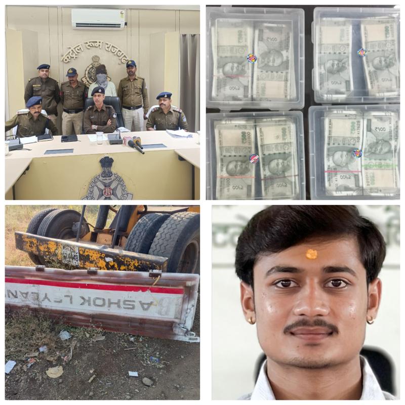 अंतर्राज्यीय ट्रक धोखाधड़ी गिरोह पर राजगढ़ पुलिस की बड़ी कार्यवाही* *मशरूका – ₹10.60 लाख नगद एवं ₹20 लाख मूल्य की हाइड्रा क्रेन सहित वाहन पार्ट्स जप्त कुल 30.60 लाख का मशरुका बरामद*