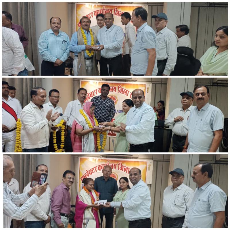 पेंशनरों को पीपीओ का वितरण एवं सम्मान कार्यक्रम शुक्रवार को कलेक्ट्रेट सभाकक्ष में किया गया है। जिसमें अपर कलेक्टर श्री प्रताप सिंह चौहान, संयुक्त कलेक्टर श्री वीरेन्द्र सिंह दांगी एवं अनुविभागीय (राजस्व) अधिकारी सुश्री निधी भारद्वाज, डिप्टी कलेक्टर सुश्री ज्योति राजोरा द्वारा सेवानिवृत्ति शासकीय सेवकों को शाल, श्रीफल एवं पीपीओ प्रदान किए गए।