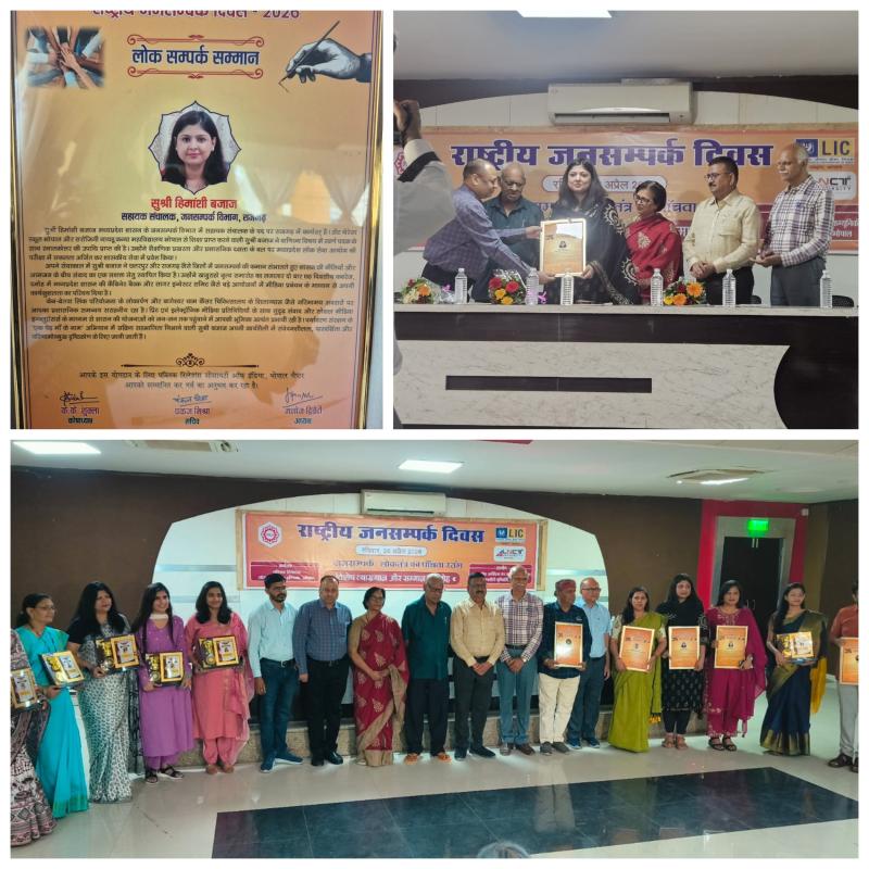 पब्लिक रिलेशंस सोसायटी ऑफ इंडिया (PRSI), भोपाल चैप्टर द्वारा रविवार को एलएनसीटी यूनिवर्सिटी परिसर में 'राष्ट्रीय जनसंपर्क दिवस' पर विशेष व्याख्यान एवं सम्मान समारोह का आयोजन किया गया। इस अवसर पर जनसंपर्क और पत्रकारिता के क्षेत्र में उत्कृष्ट कार्य करने वाली विभूतियों को सम्मानित किया गया। कार्यक्रम के दौरान विशेषज्ञों ने "जनसंपर्क: लोकतंत्र का पांचवां स्तंभ" विषय पर अपने विचार साझा किए।