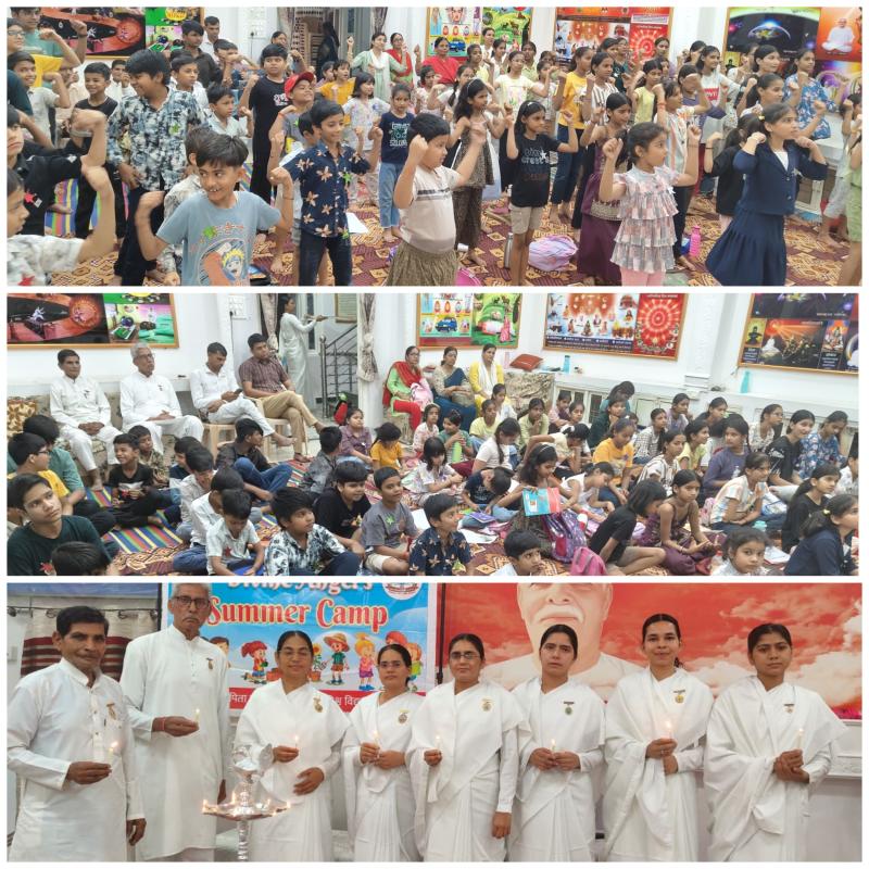 बच्चों के नैतिक एवं सर्वांगीण विकास हेतु ब्रह्माकुमारीज़ द्वारा शिव वरदान भवन में डिवाइन एंजिल्स समर कैंप का बड़े हर्ष उल्लास के साथ ब्रह्माकुमारी दिदीयो ने दीप प्रज्वलन कर उद्घाटन किया। इस अवसर पर ब्रह्माकुमारीज़ की जिला प्रभारी मधु दीदी ने सभी बच्चों को शुभ कामनाएं देते हुए कहा कि दीदी जी ने बच्चों को बताया कि जीवन में कभी भी हार नहीं मानना है, सफलता मिले या ना मिले लेकिन जीवन में हमेशा आगे बढ़ने का लक्ष्य रखना है परिश्रम ही सफलता का मंत्र है।प्रथम दिवस पर बच्चों को कैंप में आयोजित सभी गतिविधियों का टाइम टेबल तथा प्रतिदिवस की दिनचर्या का चार्ट भरना समझाया गया। सत्र में बच्चों को सीक्रेट ऑफ सक्सेस विषय पर सुरेखा दीदी ने बताया कि सफलता केवल अच्छे अंक पाना, या मन चाही वस्तु पाना या मंजिल पर पहुंचना आदि ही नहीं, साथ साथ तनाव मुक्त रहकर, खुश रहकर एवं परस्पर सहयोग भावना रखना भी सफलता मानी जाएगी। हमें सफलता के लिए झूठ, ठगी,निंदा, लड़ाई, ईर्षा आदि नकारात्मक भावों से बचना होगा। कार्यक्रम में क्विज़ प्रतियोगिता आयोजित की गई और गेम्स खेलाया गया। अंत में सभी को आइसक्रीम खिलाकर मुख मीठा कराया गया। सभी बच्चों ने समर कैंप को बहुत इंजॉय किया ।