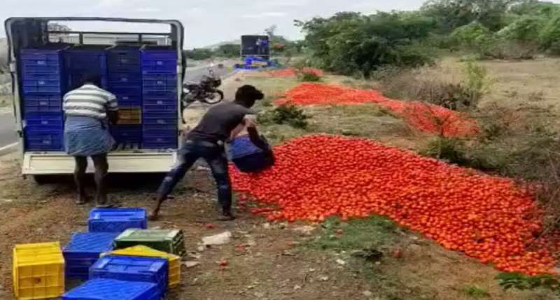 बाजार में फुटकर टमाटर बिकने का रेट 10 रुपये किलो था. किसान की इस रेट में उसकी लागत भी नही निकल रही थी. मजबूरन उसने अपने सारे टमाटर बाजार में ही आवारा जानवरो के सामने फेक दिए और मायूस होकर अपने घर चला गया. इस बीच किसान द्वारा फेंके गए टमाटरों को खाने के लिए जानवरों का झुंड टूट पड़ा. कुछ सब्जी खरीदने गए लोगो ने भी फ्री के टमाटरों की लूट की और अपने घर टमाटर ले गए. किसान राजकुमार की माने तो जो रेट बाजार में मिल रहा है उससे उसकी लागत नही निकल रही है उसको नुकसान हो रहा है इससे अच्छा है कि जानवरो का ही पेट भर जाये.