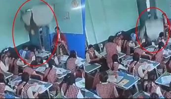 यह पूरी घटना स्कूल में लगे सीसीटीवी में कैद हो गई. वीडियो में देखा जा सकता है कि कक्षा में छात्राएं पढ़ाई कर रही थीं इसी दौरान अचानक छत का प्लास्टर भरभरा कर गिर पड़ा. प्लास्टर क्लासरूम में आगे की बेंच के ऊपर गिरा. जहां 2 छात्राएं थीं. इनमें से एक छात्रा के ऊपर प्लास्टर का बड़ा हिस्सा गिरा. जिससे वह गंभीर रूप से घायल हो गई. वहीं दूसरी छात्रा को भी सिर में चोट आई है. इसी बेंच के नजदीक स्कूल टीचर भी खड़ी थीं.