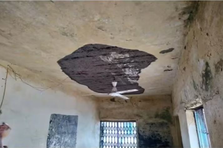कक्षा में पढ़ाई करते बच्चों पर टूटा कहर, गिरा जर्जर छत का प्लास्टर