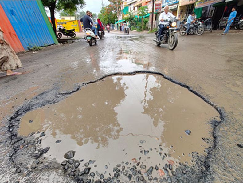 इंदौर में बारिश ने खोली स्मार्ट सिटी की पोल, सड़कें टूटीं, गड्ढों से भरे रास्ते