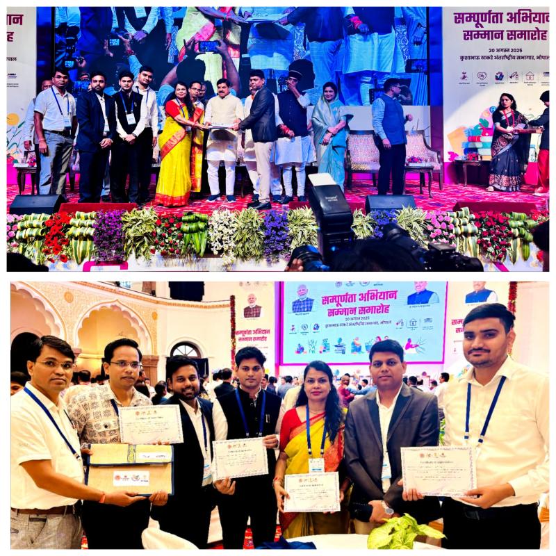 नीति आयोग भारत सरकार द्वारा 20 अगस्त को भोपाल में आयोजित संपूर्णता सम्मान समारोह में माननीय मुख्यमंत्री डॉ मोहन यादव द्वारा सम्मानित किया गया