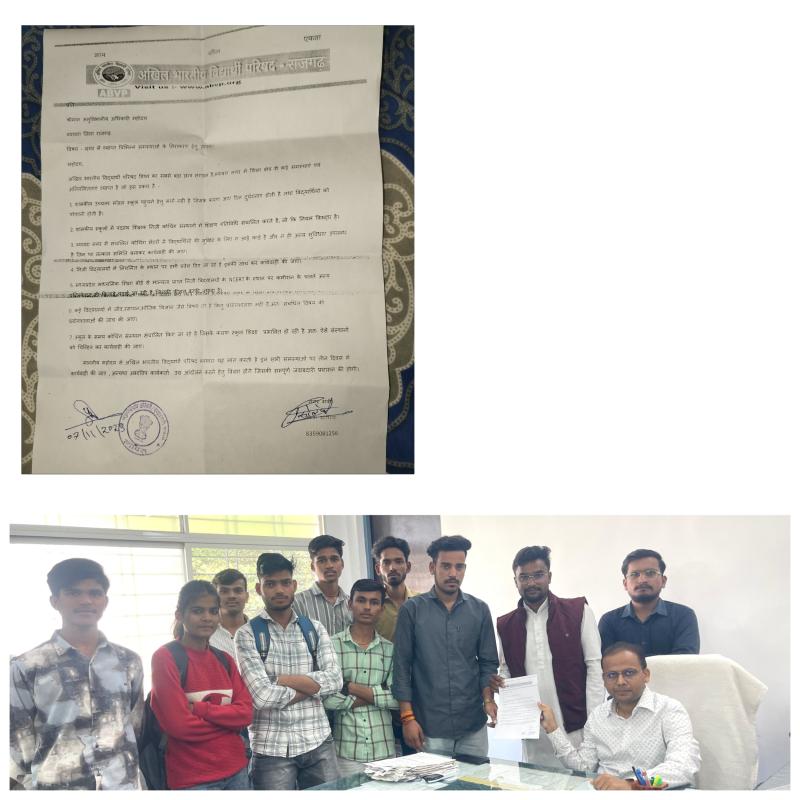 7. स्कूल के समय कोचिंग संस्थान संचालित किए जा रहे है जिसके कारण स्कूल शिक्षा प्रभावित हो रही है अतः ऐसे संस्थानों को चिन्हित कर कार्यवाही की जाए। अभाविप ने कहा उक्त समस्याओं पर तीन दिन में कार्यवाही की जाए अन्यथा अभाविप उग्र आंदोलन करेगी जिसकी सम्पूर्ण जवाबदारी शासन प्रशासन की होगी। इस दौरान भाग संयोजक जीत शिवहरे,सहमंत्री सपना सेन,विशाल दांगी,सुमित सोंधिया,अनिल मंडलोई,सचिन,माखन,भूपेंद्र,कौशल,सुमित आदि कार्यकर्ता उपस्थित रहे।