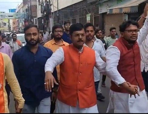 विश्व हिंदू परिषद और बजरंग दल के कार्यकर्ताओं ने शुक्रवार को बाल भवन से नगर निगम कार्यालय तक रैली निकाल कर ग्वालियर में निगम की नाक के नीचे चल रहे अवैध बूचड़खानों पर अनदेखी का विरोध जताया. नारेबाजी करते कार्यकर्ता नगर निगम कार्यालय पहुंचे तो पुलिस ने बेरिकेटिंग के जरिये उन्हें रास्ते में ही रोक लिया. जिस पर हिंदू संगठन और पुलिसकर्मियों में जमकर बहस हुई. इस दौरान हिंदू संगठन के कार्यकर्ताओं ने सड़क पर बैठकर ही हनुमान चालीसा का पाठ कर इस बात का भी विरोध जताया.