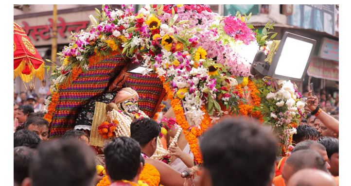 सीएम हेलीकॉप्टर से बरसाते रहे पुष्प, भक्त झूम उठे