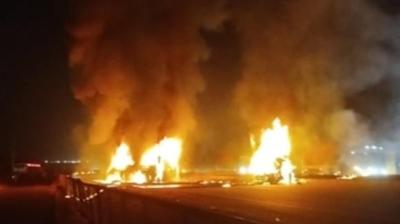 दिल दहला देने वाला हादसा: बस और लॉरी की भिड़ंत के बाद लगी भीषण आग, 12 की मौत, 20 झुलसे