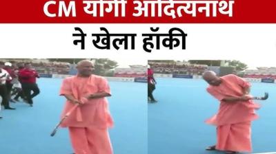 हॉकी मैदान में सीएम योगी का नया अंदाज, खिलाड़ियों को प्रोत्साहित करने के लिए खुद मैदान पर उतरे और शॉट लगाया