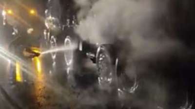 चलते ट्रक में लगी आग, दमकल विभाग ने कड़ी मशक्कत के बाद पाया काबू