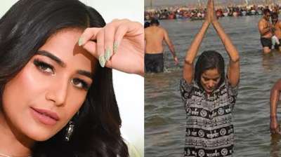 मौनी अमावस्या के दिन पूनम पांडे ने लगाई संगम में डुबकी
