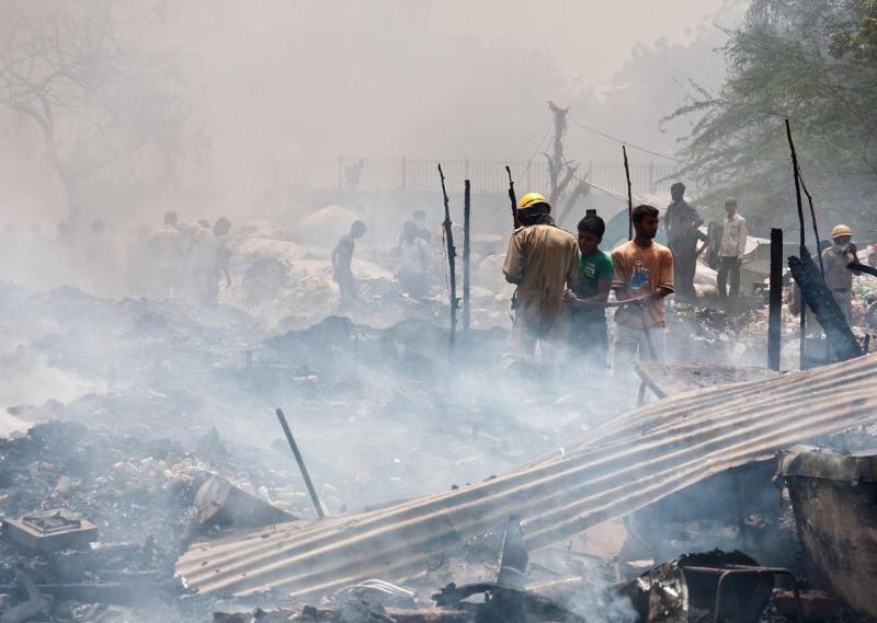 झुग्गी बस्ती में तबाही, राहत कैंप में पहुंचाए गए पीड़ित